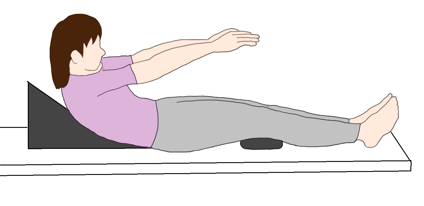 | ●対策 ・骨盤を立てるように 引き込み運動 ・腹筋強化 ・太もも前のストレッチ ・骨盤の後傾方向への調整および運動 |