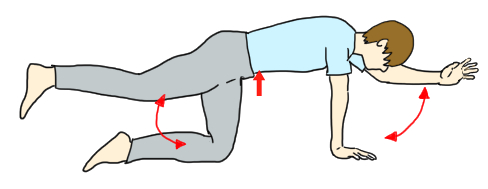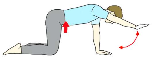 もし四つん這いになってお腹を水平に保つことが難しい、しんどい場合には背筋群の筋力強化も必要になります。